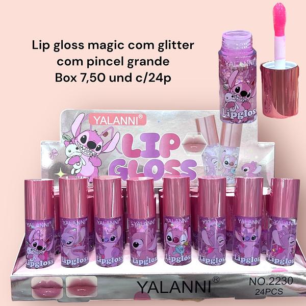 Lip gloss magic com glitter com pincel grande