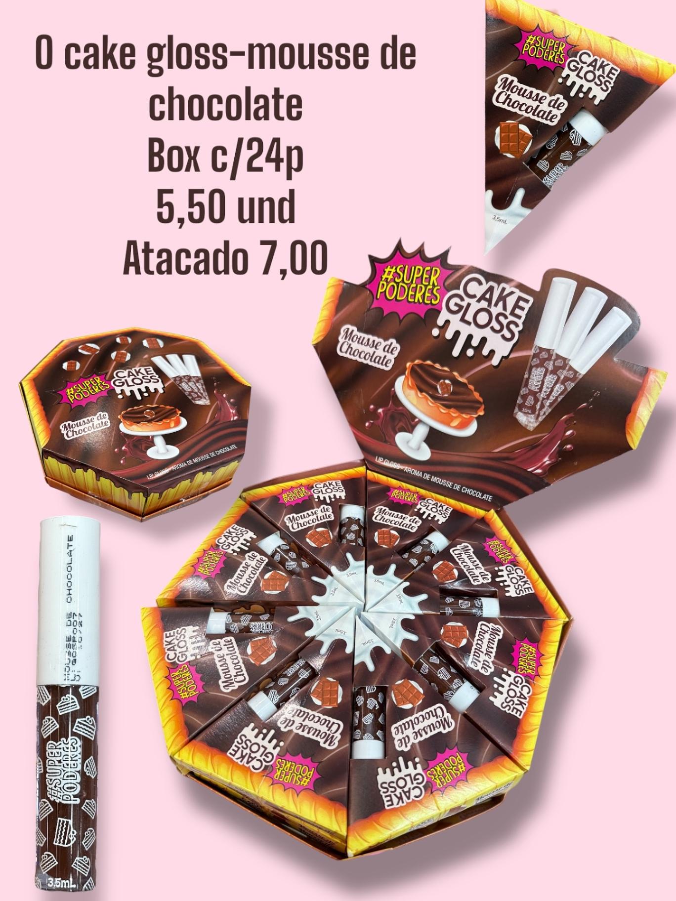 O cake gloss-mousse de chocolate